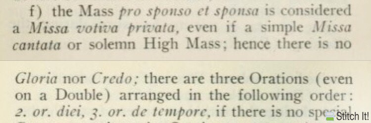 f) the Mass _pro sponso et sponsa is considered a Missa votiva privata, even if a simple Missa cantata or solemn High Mass; hence there is no Gloria nor Credo…